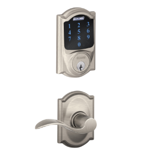 Home > Products > Schlage Connect Touchscreen Deadbolt with alarm with Camelot trim paired with Accent Lever with Camelot trim